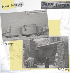 Здравствуйте, уважаемые подписчики И вновь рубрика «Краеведческая среда», а значит, мы продолжаем следить за ходом строительства Храма в Константиновке.Пролистывая далее странички районной газеты «Заря Амура», в номере за 9 декабря 2006 года, наконец, появилось фото строящегося храма.Спустя два года, в номере от 12 июля 2008 года вновь фото со стройки, и статья Евгения Петрова «Православные храмы – символ России».
