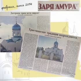 И вот в день памяти Святого Владимира пришёл контейнер с куполом и крестом. Прибывшие из Волгодонска специалисты, а именно там был сделан купол, в течение месяца вели его сборку. Сделан он из стеклопластика, а облицовка выполнена оксид титаном. Этот материал очень прочный, любые климатические катаклизмы ему нипочём. Изготовители гарантируют, что срок службы их детища как минимум пятьдесят лет. Очень жаль, что газета у нас не цветная и на фотографии не видно, как красив небесно-голубой купол, как сияет над ним крест!
