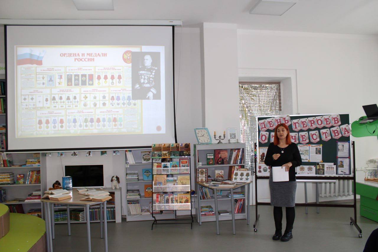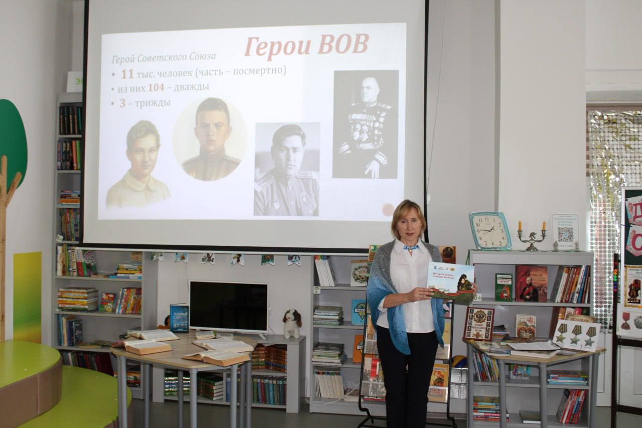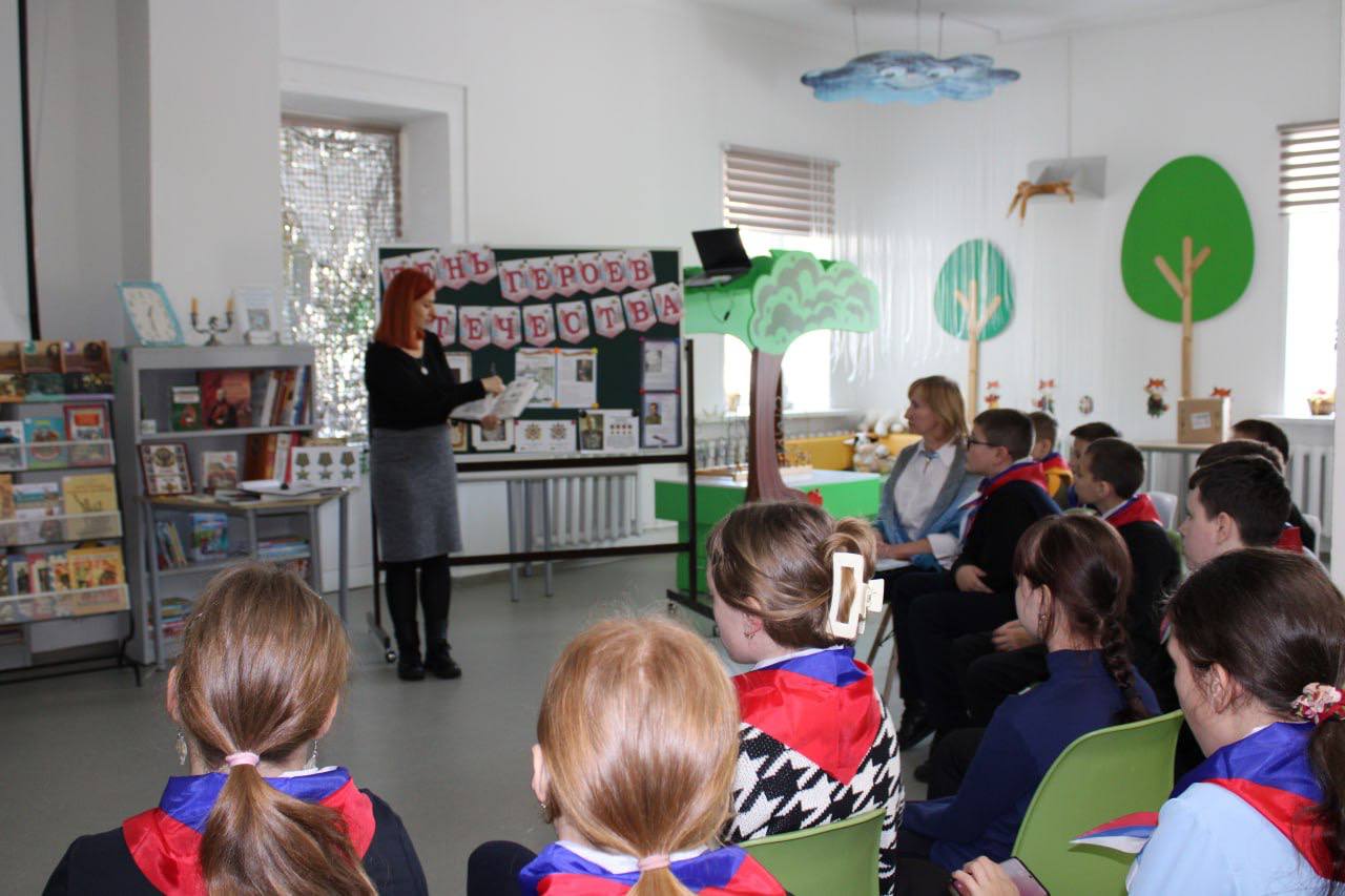 Детская библиотека вместе с обучающимися 6 «В» класса завершила Год Защитника Отечества и 80-летия Победы патриотическим часом «Сильна страна героями».