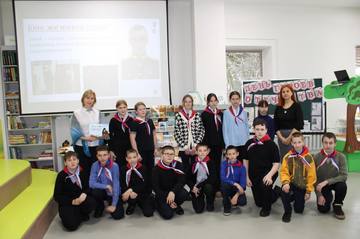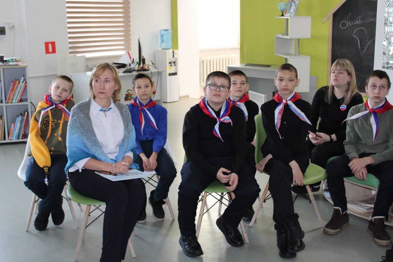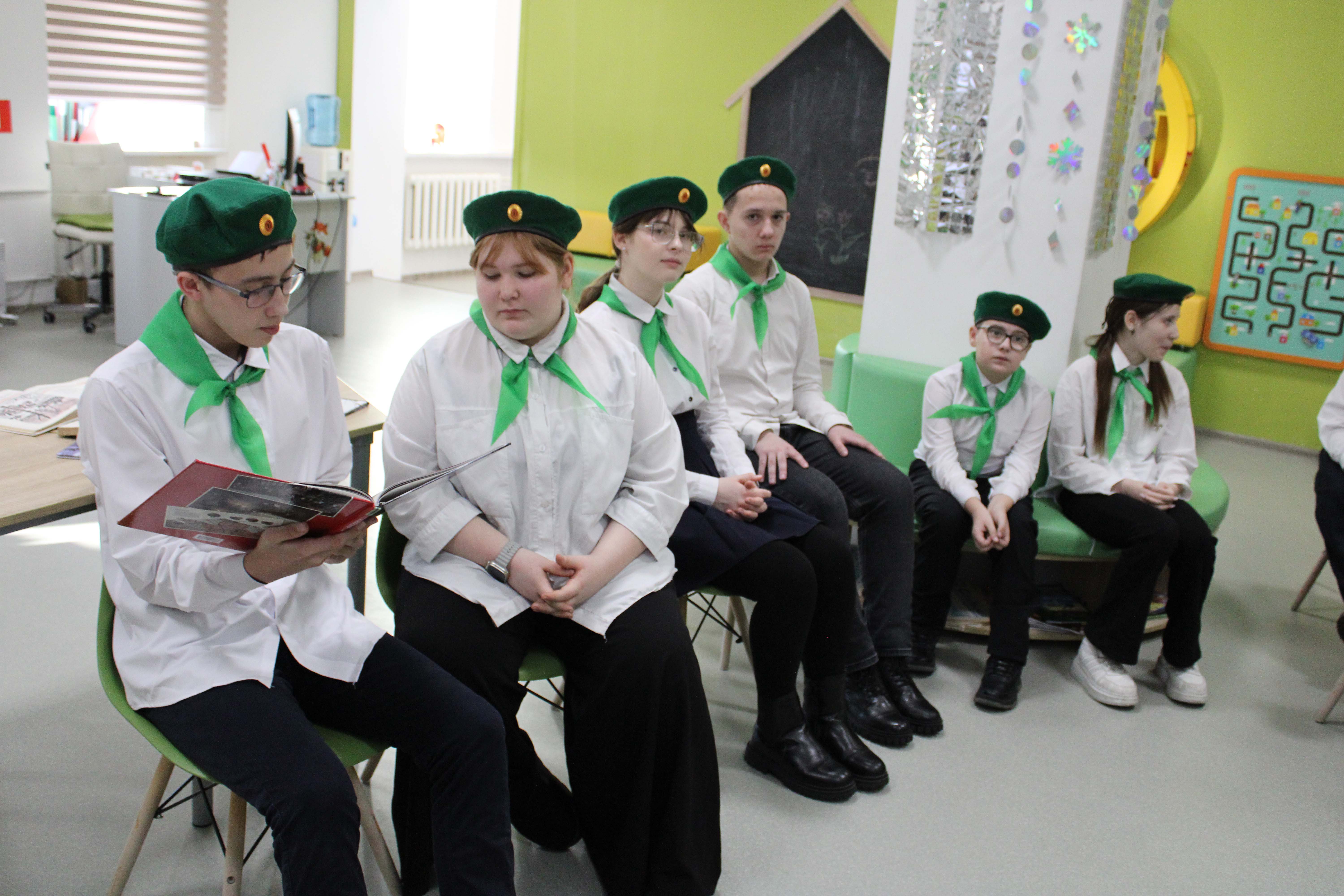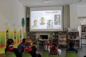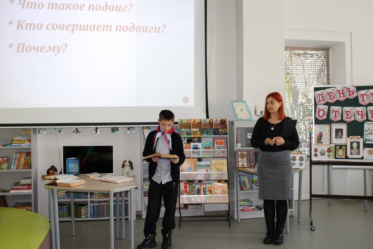 Детская библиотека вместе с обучающимися 6 «В» класса завершила Год Защитника Отечества и 80-летия Победы патриотическим часом «Сильна страна героями».