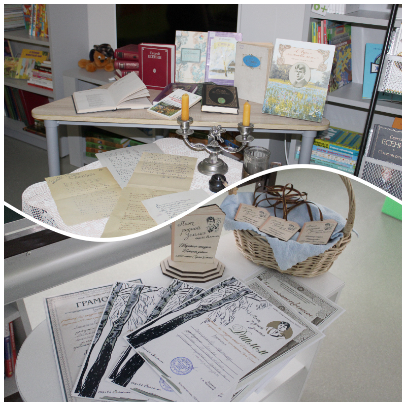 Но конкурс чтецов был бы неполным без возможности увидеть и почувствовать атмосферу, в которой творил поэт. Именно поэтому мы дополнили мероприятие уникальной выставкой экспонатов, предоставленных нашим краеведческим музеем и конечно же книг с произведениями Сергея Есенина.