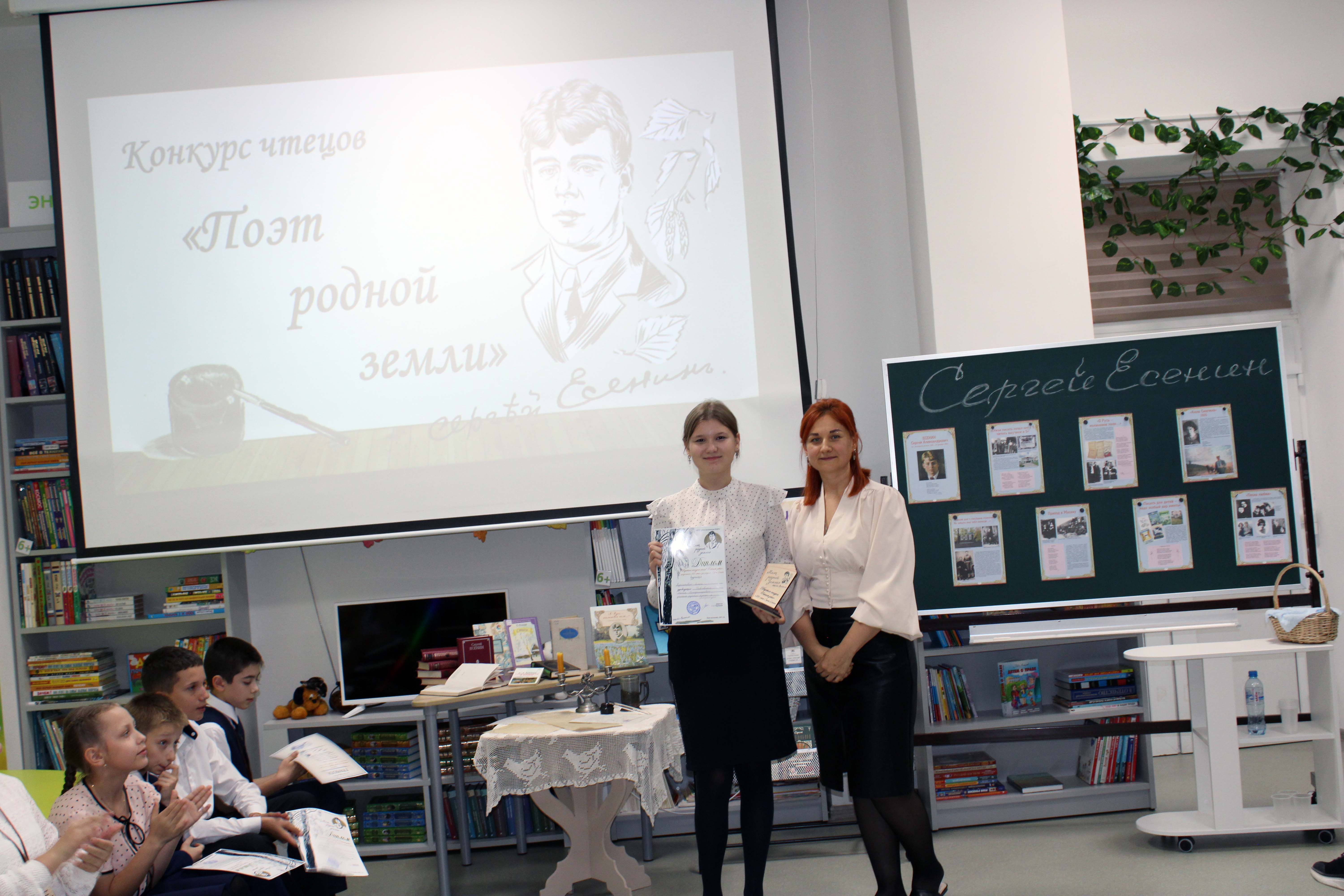Особые овации сорвала победительница конкурса Куренкова Ольга из 7Б класса, которой была вручена наградная статуэтка в форме книги и диплом победителя. Этот символичный подарок стал достойной наградой за мастерство и глубокое проникновение в поэзию Сергея Есенина.